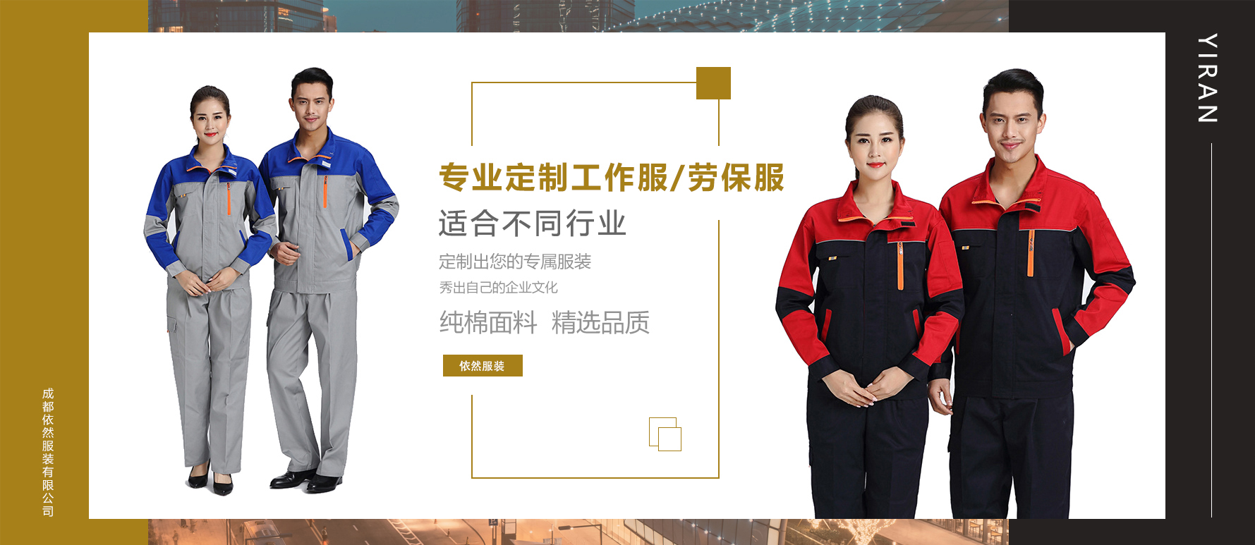 成都依然服裝有限公司座落于偉大的天府之國成都,公司是一家專業從事定制銷售各類企業工廠服裝的企業。其公司的主要產品包含有(廠服,勞保服,工作服,牛仔服,體恤,廣告衫,沖鋒衣,衛衣,反光馬甲,宣傳馬甲,西服,襯衫,職業工裝,廣告帽,安全帽,手套,勞保鞋,保安服,保潔服,餐飲服,園服,圍裙大褂,等各類團體服裝)。恭迎各企事業單位的來電咨詢,期待能與貴單位長遠合作發…